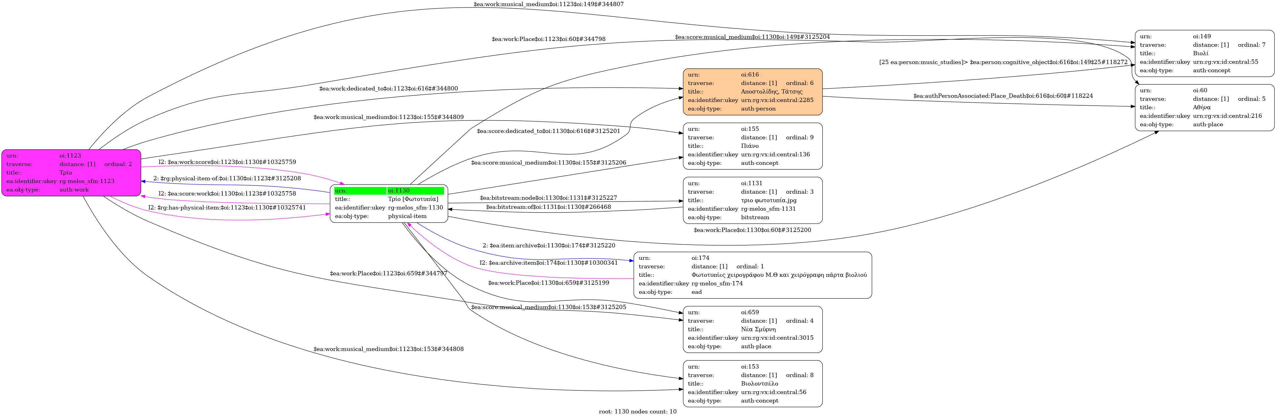Internal display of the 1130 entity interconnections (Node labels correspond to identifiers)