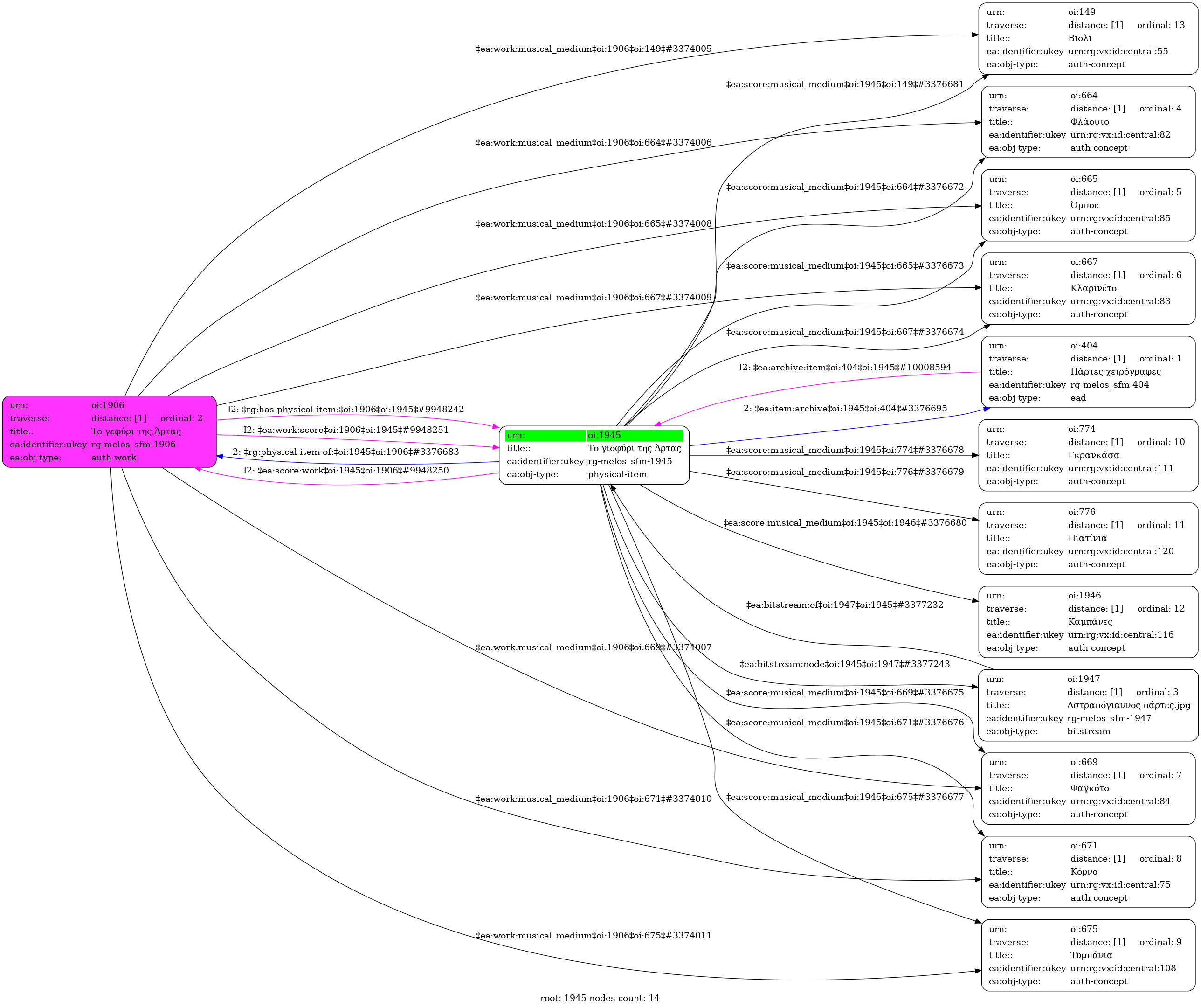 Internal display of the 1945 entity interconnections (Node labels correspond to identifiers)