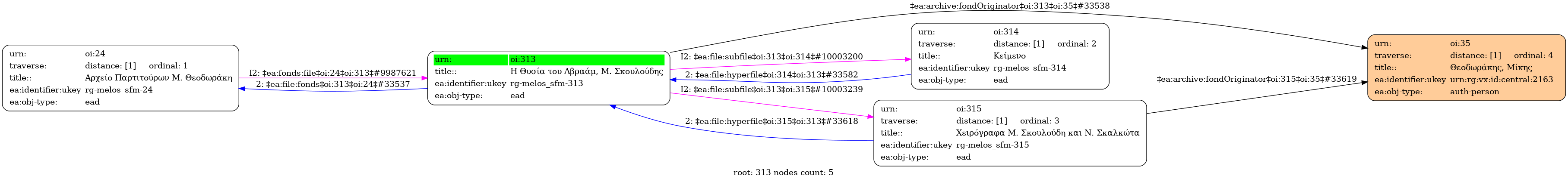 Internal display of the 313 entity interconnections (Node labels correspond to identifiers)