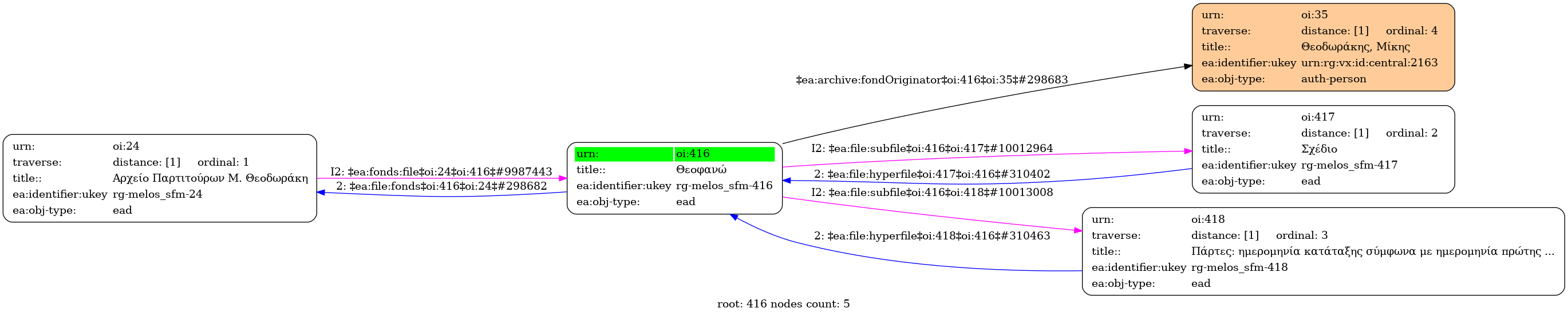 Internal display of the 416 entity interconnections (Node labels correspond to identifiers)