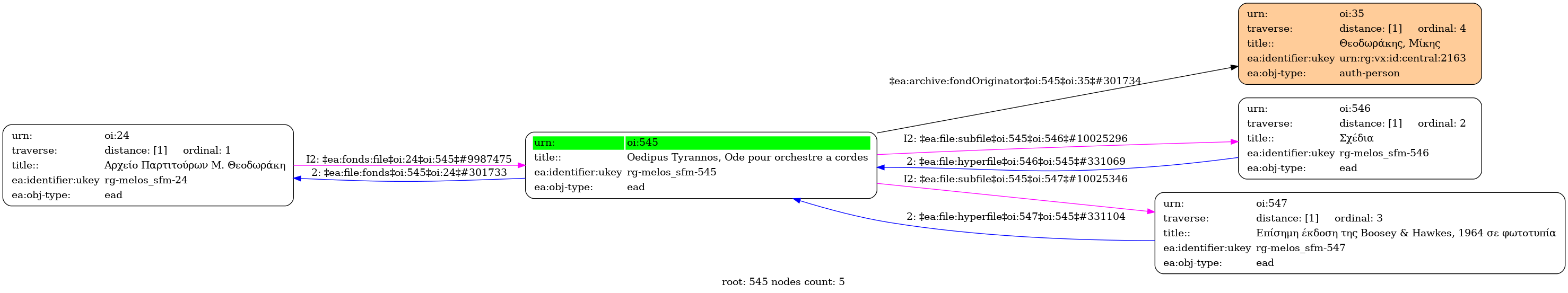 Internal display of the 545 entity interconnections (Node labels correspond to identifiers)