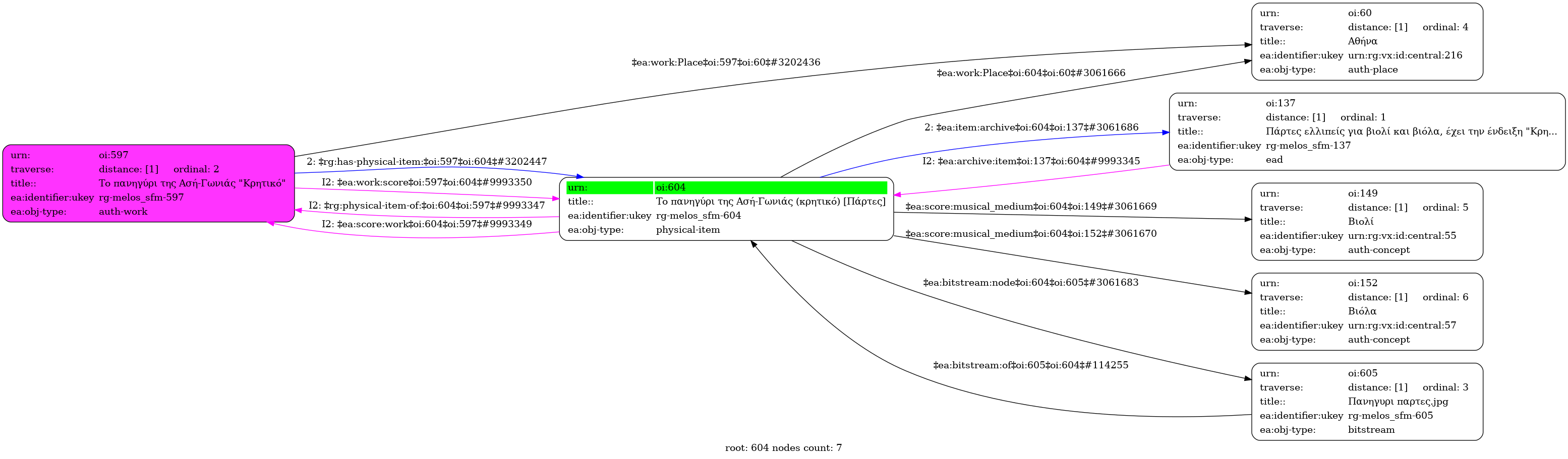 Internal display of the 604 entity interconnections (Node labels correspond to identifiers)
