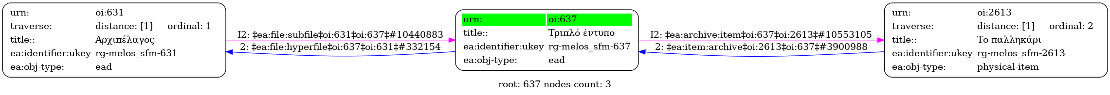 Internal display of the 637 entity interconnections