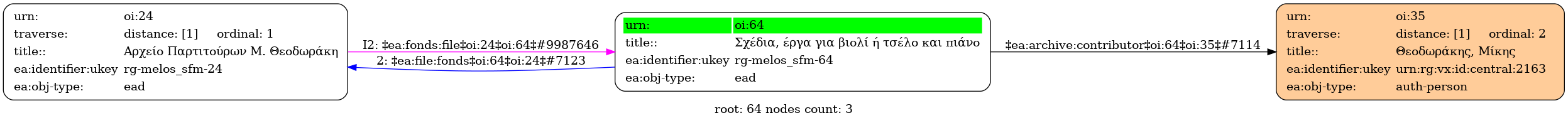 Internal display of the 64 entity interconnections (Node labels correspond to identifiers)