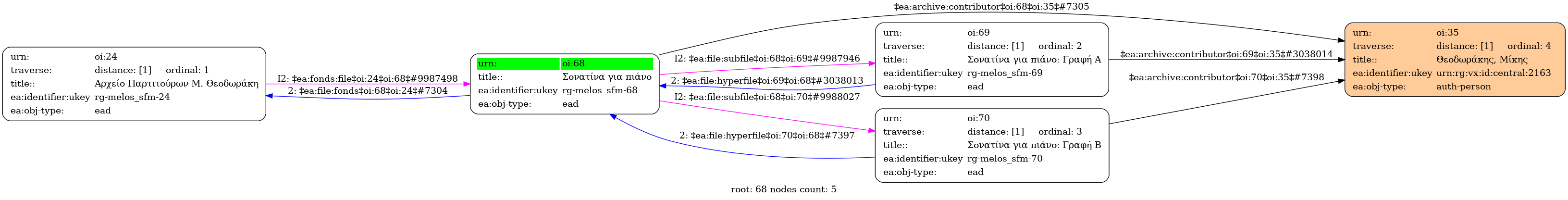 Internal display of the 68 entity interconnections (Node labels correspond to identifiers)