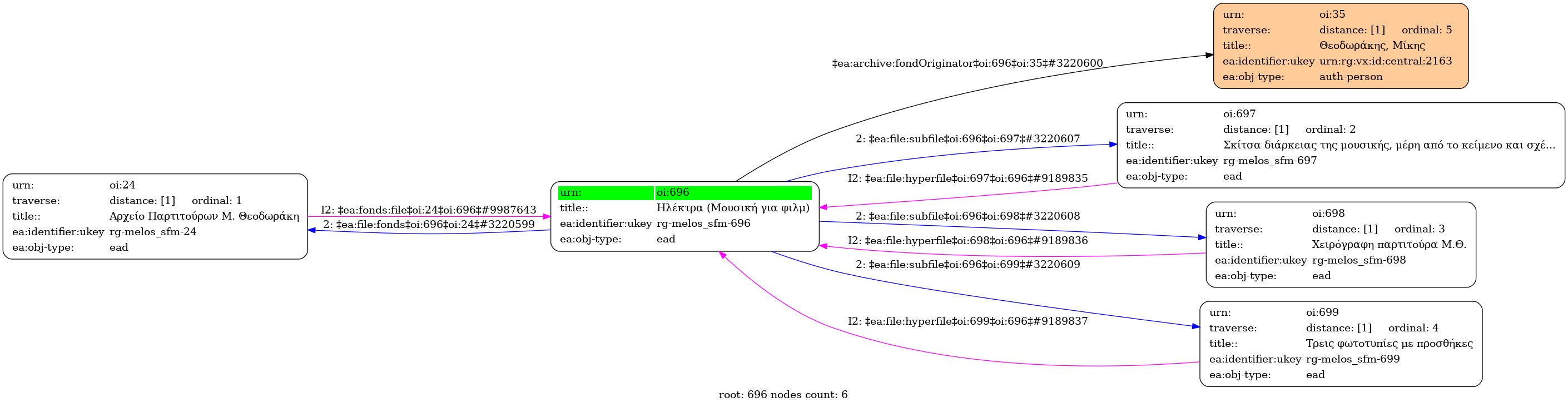 Internal display of the 696 entity interconnections (Node labels correspond to identifiers)