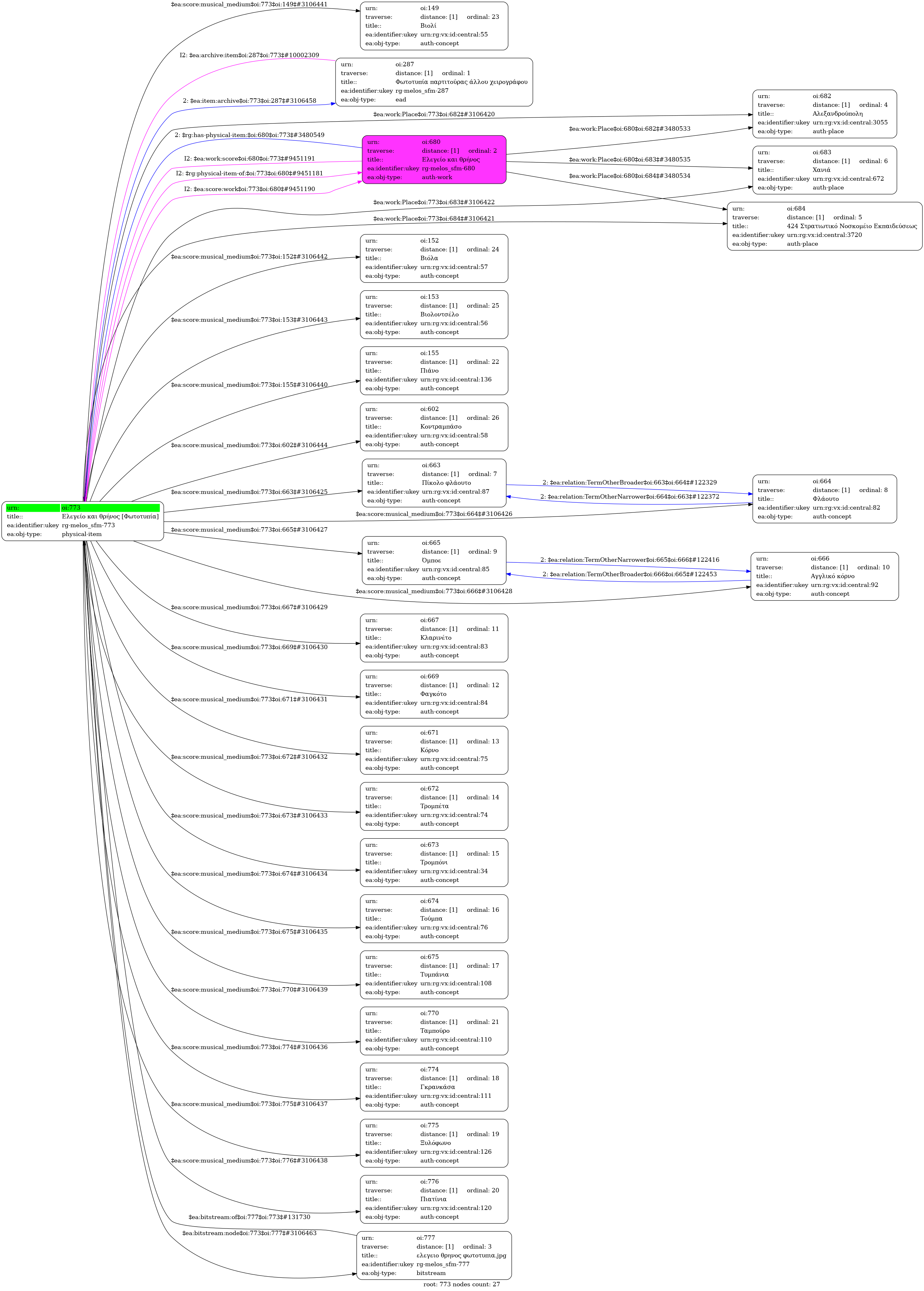 Internal display of the 773 entity interconnections (Node labels correspond to identifiers)