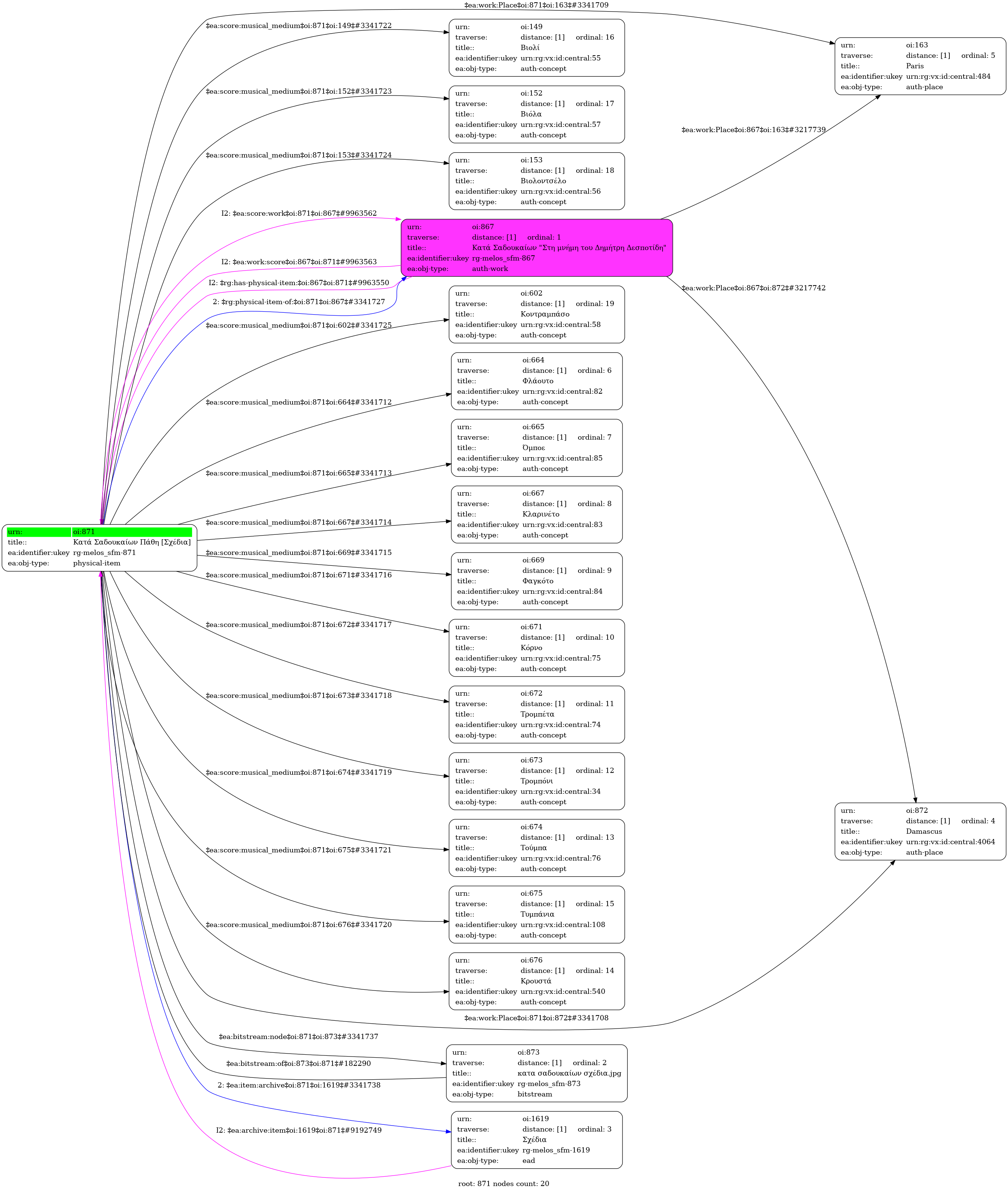 Internal display of the 871 entity interconnections (Node labels correspond to identifiers)