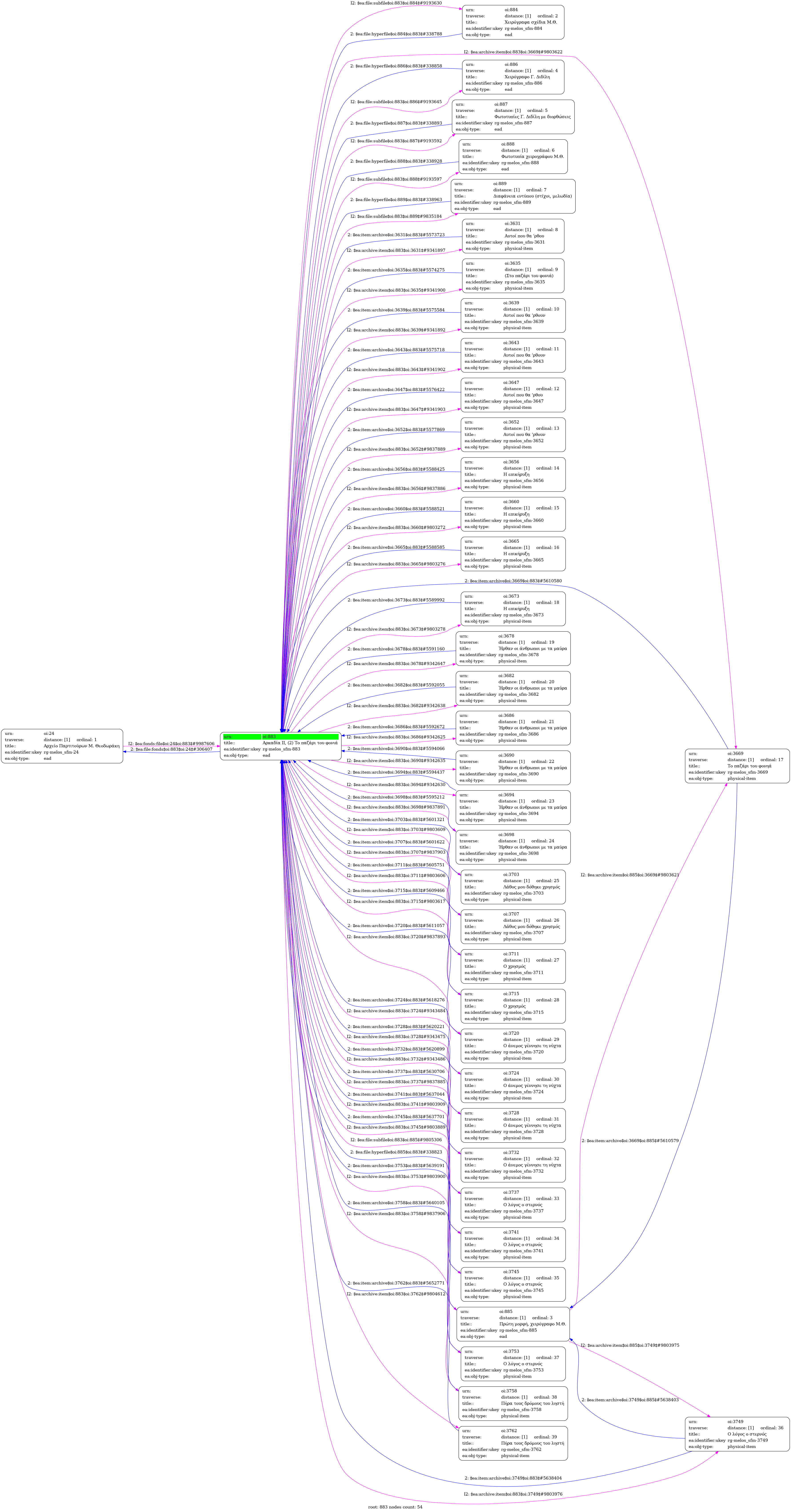 Internal display of the 883 entity interconnections (Node labels correspond to identifiers)