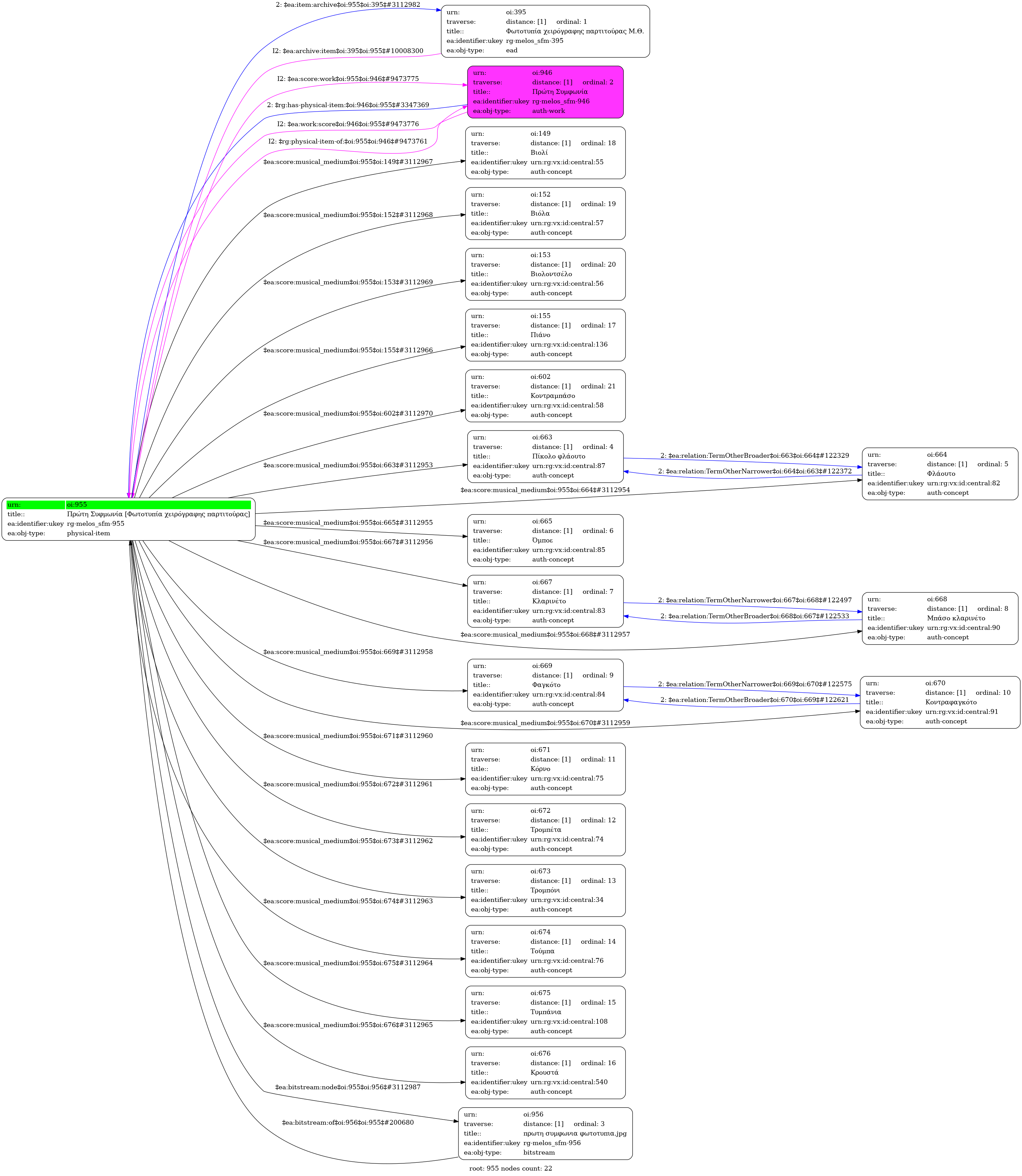 Internal display of the 955 entity interconnections (Node labels correspond to identifiers)
