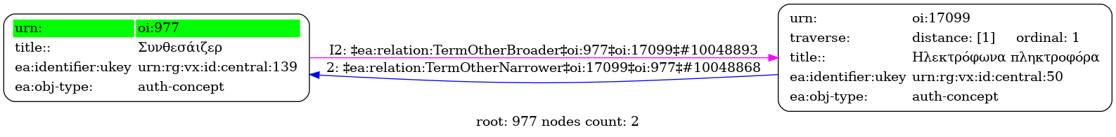 Internal display of the 977 entity interconnections